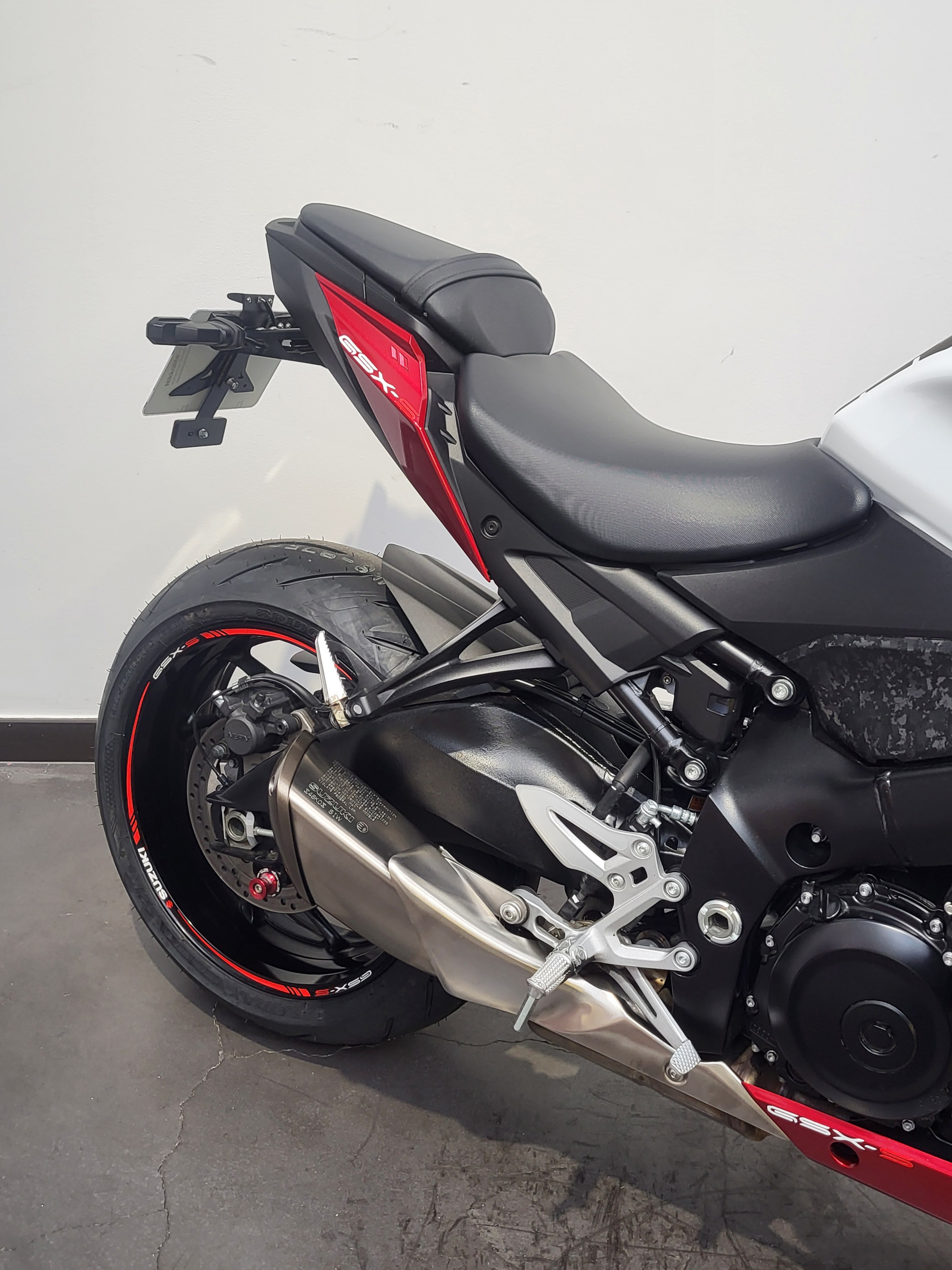 Options : Leviers courts, rétro embout de guidon, liserets de jantes, support de plaque court, saut vent Suzuki, extension de béquille.